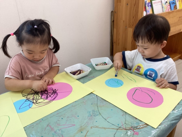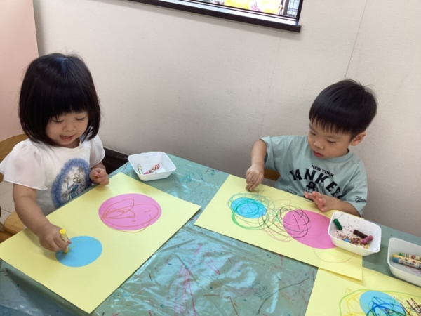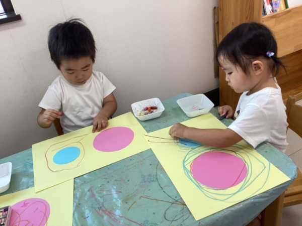 色んな色の丸を沢山描いていましたよ(*^▽^*)