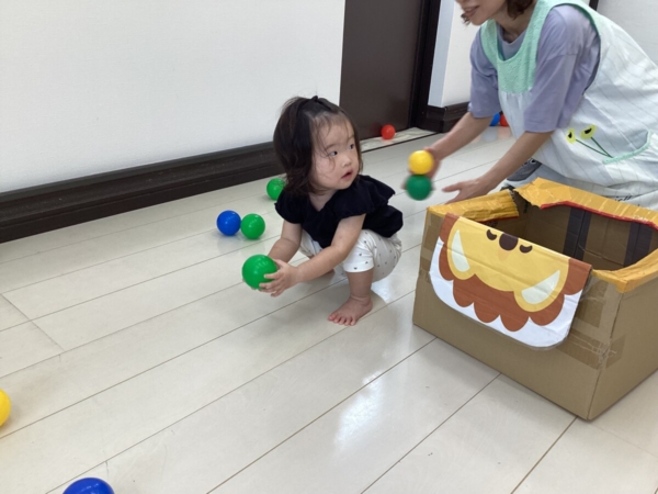段ボールの中にボールを入れたり、自分が入ってみたりとお茶目な姿も見られ可愛かったです♡