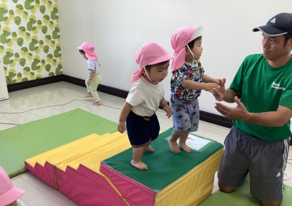 高い所が大好きな子ども達は大喜びで先生と手を繋いでジャンプしていましたよ♪