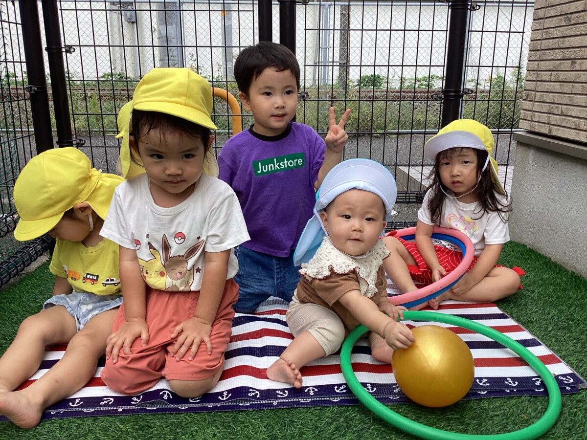 園庭に敷いたシートの上に皆で座り、のんびりと過ごす姿が見られましたよ🍀