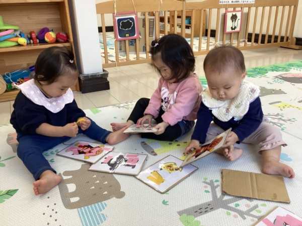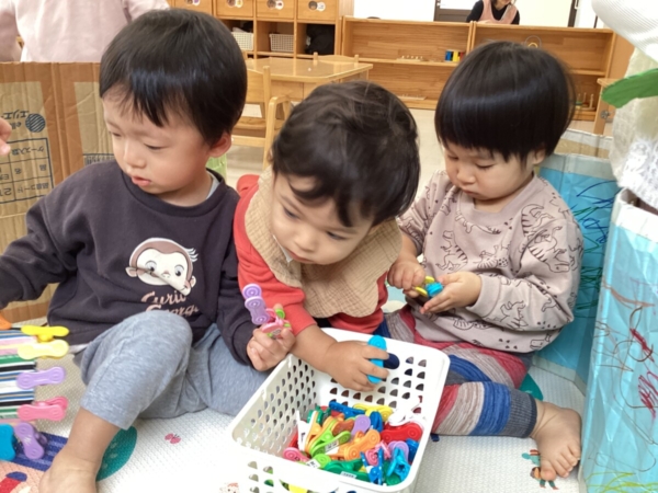 指先が器用になってきて付けたり外したりする様子が見られました!