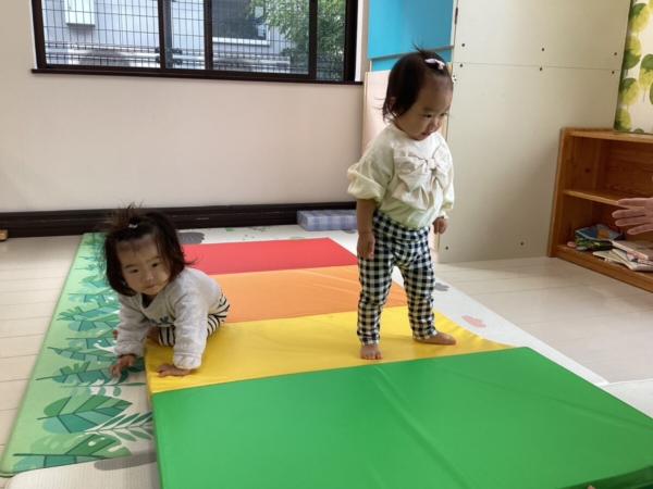 マットの上でジャンプしたり段差を昇り降りしながら喜んでいました(*^^*)