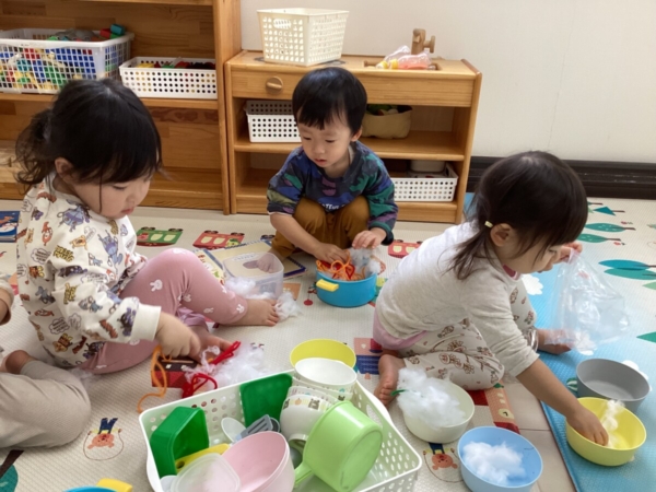 「ちゅるちゅるつくったよ」「あいすできた」とそれぞれ好きなものを作って楽しんでいましたよ☆