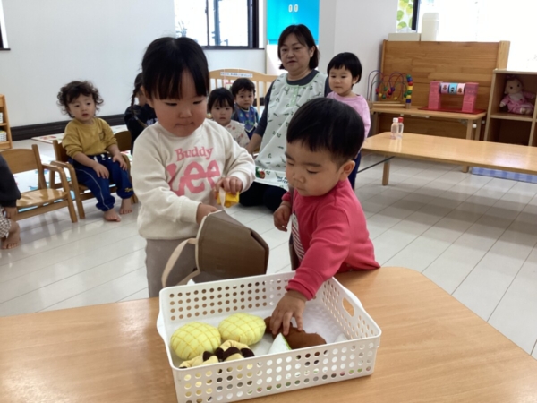「これください」「メロンパンがいい」などやり取りをしながら遊ぶことが出来ました♪