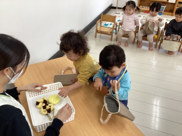 最近お店屋さんごっこをして遊んでいる子ども達。この日は保育者がお店屋さんになりパン屋さんごっこを楽しみましたよ🍞