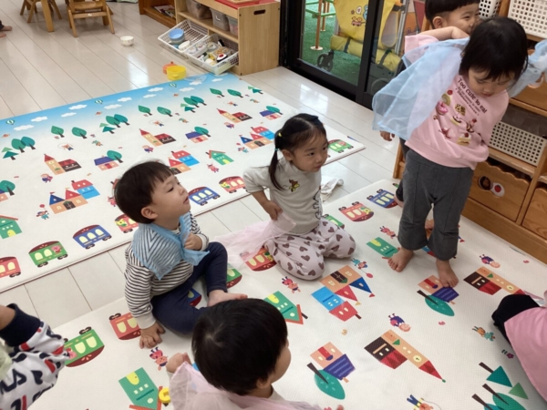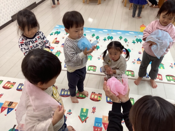 最後にオーガンジーを使って体をごしごししてお風呂ごっこもしました!