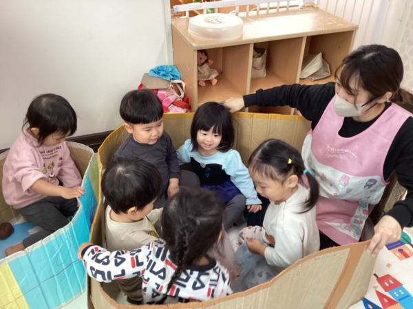 大きな段ボールの中にみんなで入って温まりましたよ(*^-^*)気持ちよさそうですね♪