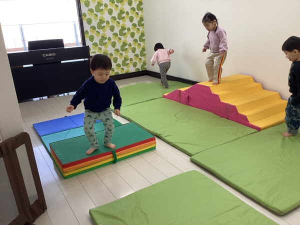 レインボーマットではマットの間に入って遊ぶことが楽しいようです☆