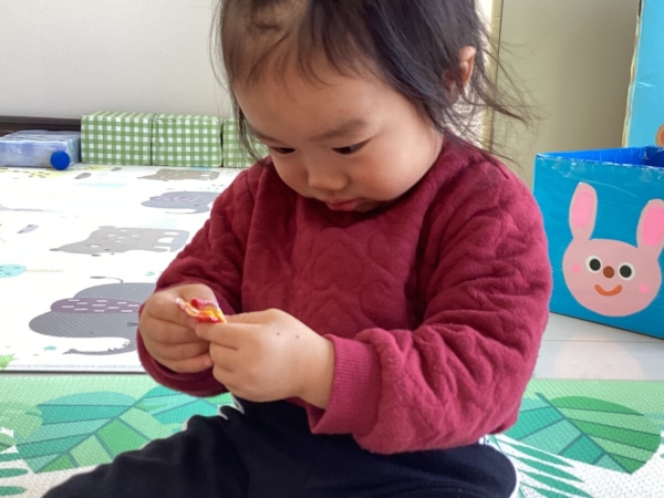 しっかりくっついているので力がいるのですが、指先を使って上手に剥がすことが出来ていましたよ☆