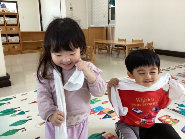 タオルを使って遊びました。