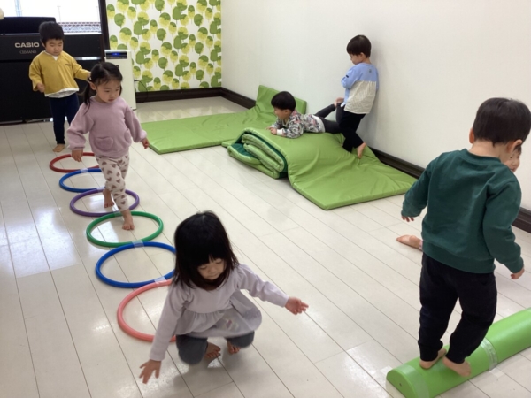 マットやフープ、ポールのサーキットで遊びました。