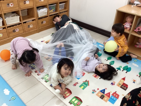 大布をお布団に見立ててみんなで寝転ぶ姿もありました!気持ちよさそうですね♪