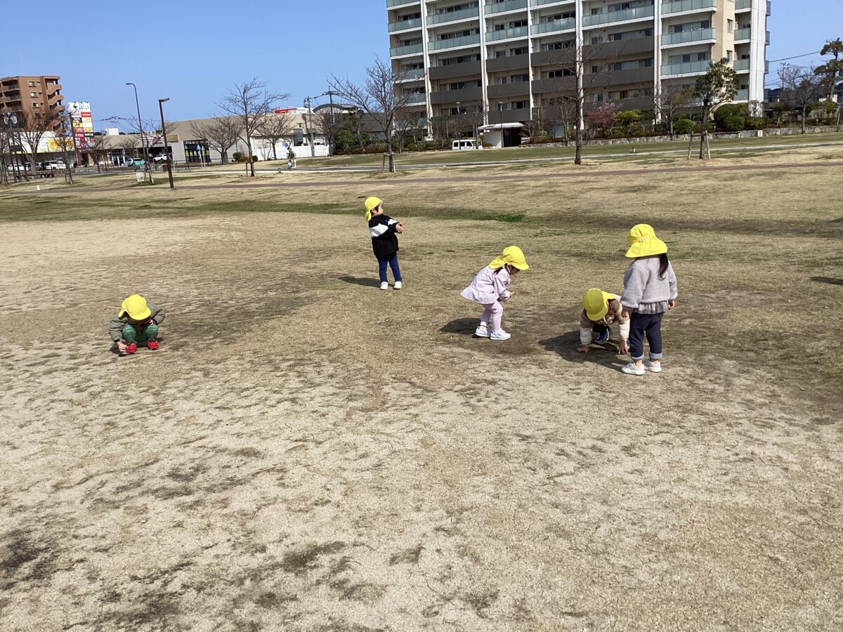 今週は暖かい日もあり園庭では芝生に寝転んで日向ぼっこをする姿が見られましたよ☀