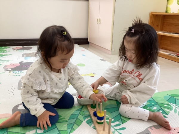 プラステンという玩具に夢中です。色別に入れたりする様子も見られますよ~!たくさん遊んでいきたいと思います(^O^)/