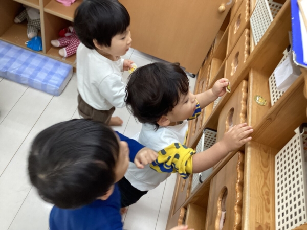 すぐに見つかるところからおもちゃの中や棚の中など少し難しいところにもあり、一生懸命探す姿がありましたよ!見つけることが出来ると「あったよ!」と目をキラキラさせながら教えてくれて可愛かったです♡