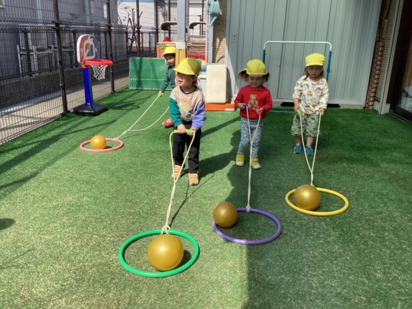 今週はとても暖かく、お散歩に行ったり、園庭で伸び伸びと遊ぶことができました!