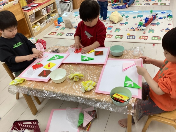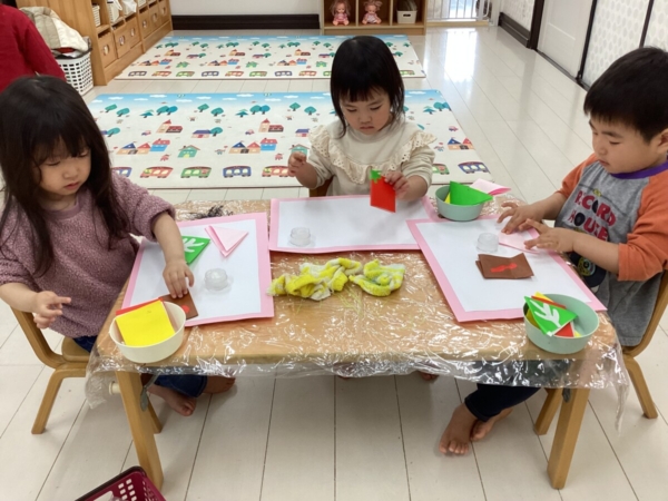 糊の使い方も上手になっていて、つけすぎないように自分で調節しながら貼ることが出来ていました!