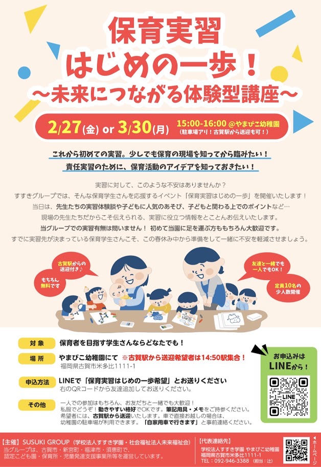 すすきグループでは、そんな保育学生さんを応換するイベント「保育実習はじめの一歩」を開催いたします!