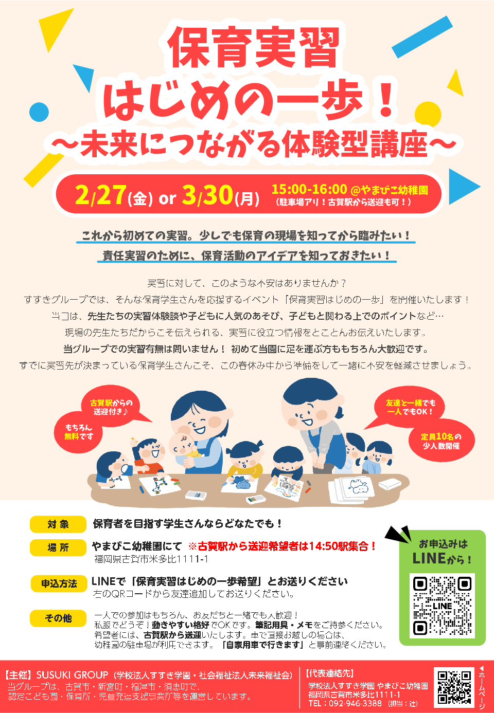 すすきグループでは、そんな保育学生さんを応援するイベント「保育実習はじめの一歩」を開催いたします!