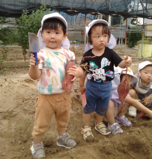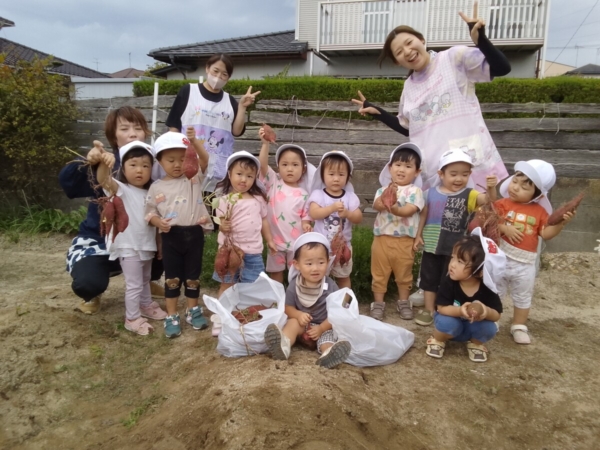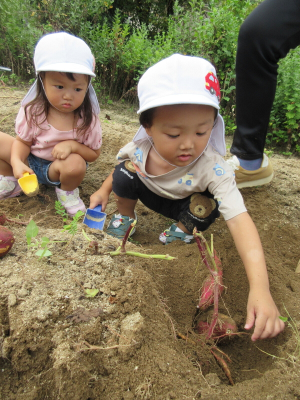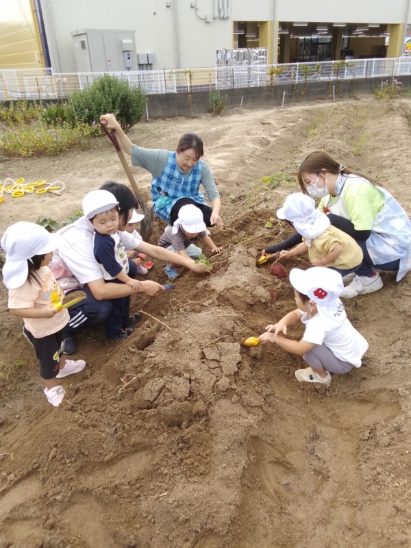 2025.10.22 日吉こども園 お芋掘りをしました🍠 畑で苗から植えて育てたお芋を収穫しました! スコップで土をたくさん掘ったり、一生懸命に苗を引っ張ったり積極的に頑張る子どもたち。 大きなお芋、小さなお芋、色んなお芋がたくさんとれて嬉しそうでしたよ♪