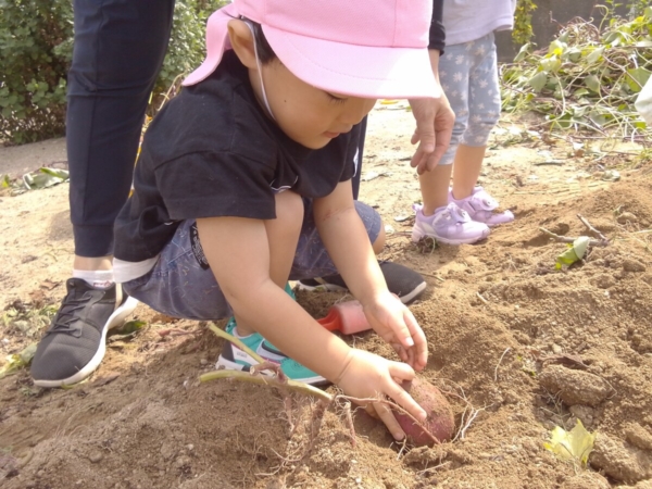2025.10.08 花鶴幼児園 芋掘りに行きました🍠 ぱんだ、うさぎぐみさんで芋掘りに行きました!子どもたちはスコップを使って土を掘りツルを引っ張って沢山サツマイモを採ることができましたよ✨️ 畑にいる虫や草花にも興味を持ち、沢山観察できました😊 こあらぐみさんは歩けるお友達が増えてきてたくさんお外で遊んでいます🥰