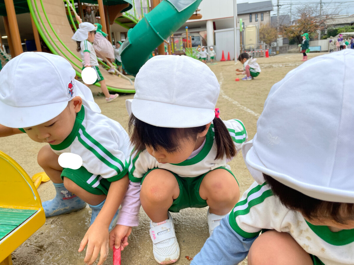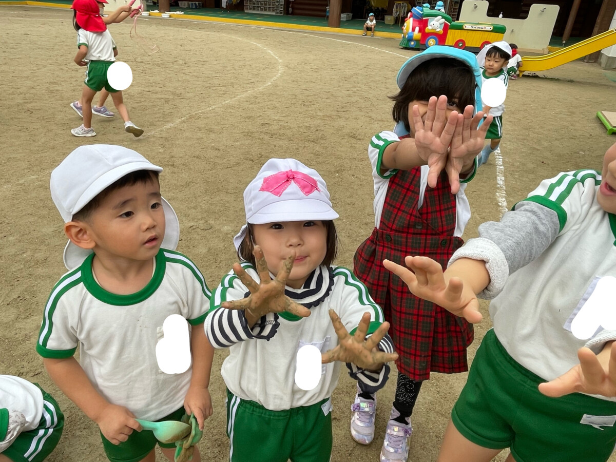 お友達やお兄さん、お姉さんと泥んこ遊びを楽しみました✨