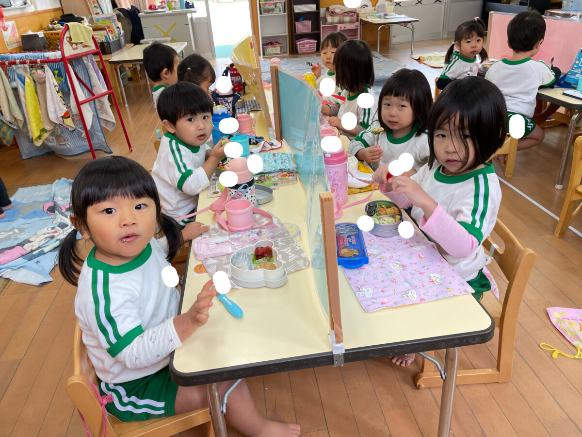 たくさん動いて、「お腹がぺこぺこ!」「きょうのお弁当何かな?」とお弁当をパクリ!