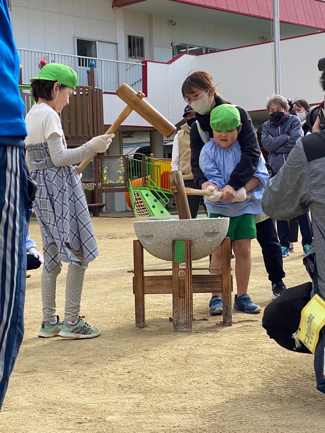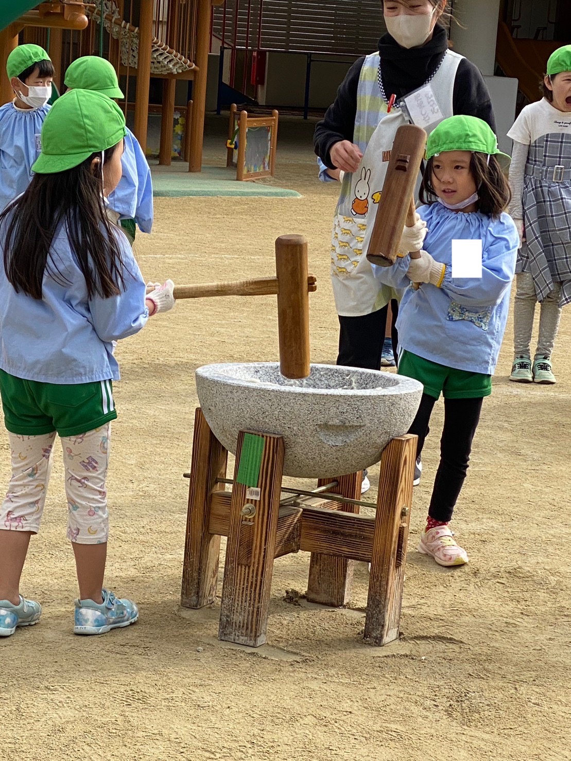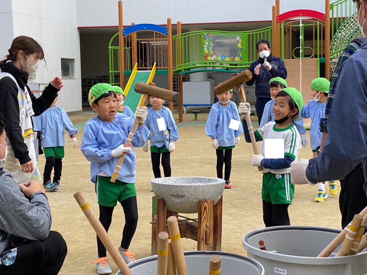 はなぐみさんが餅つきをしている姿を見て