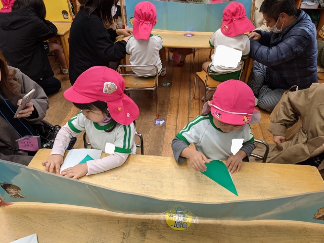 その後お部屋に戻り、折り紙をしました。