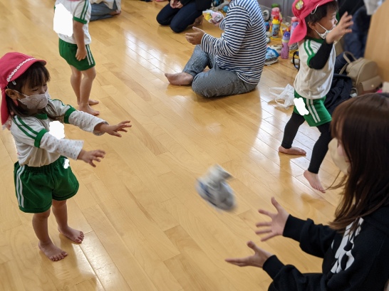 フェイスタオルを丸めてボール投げ