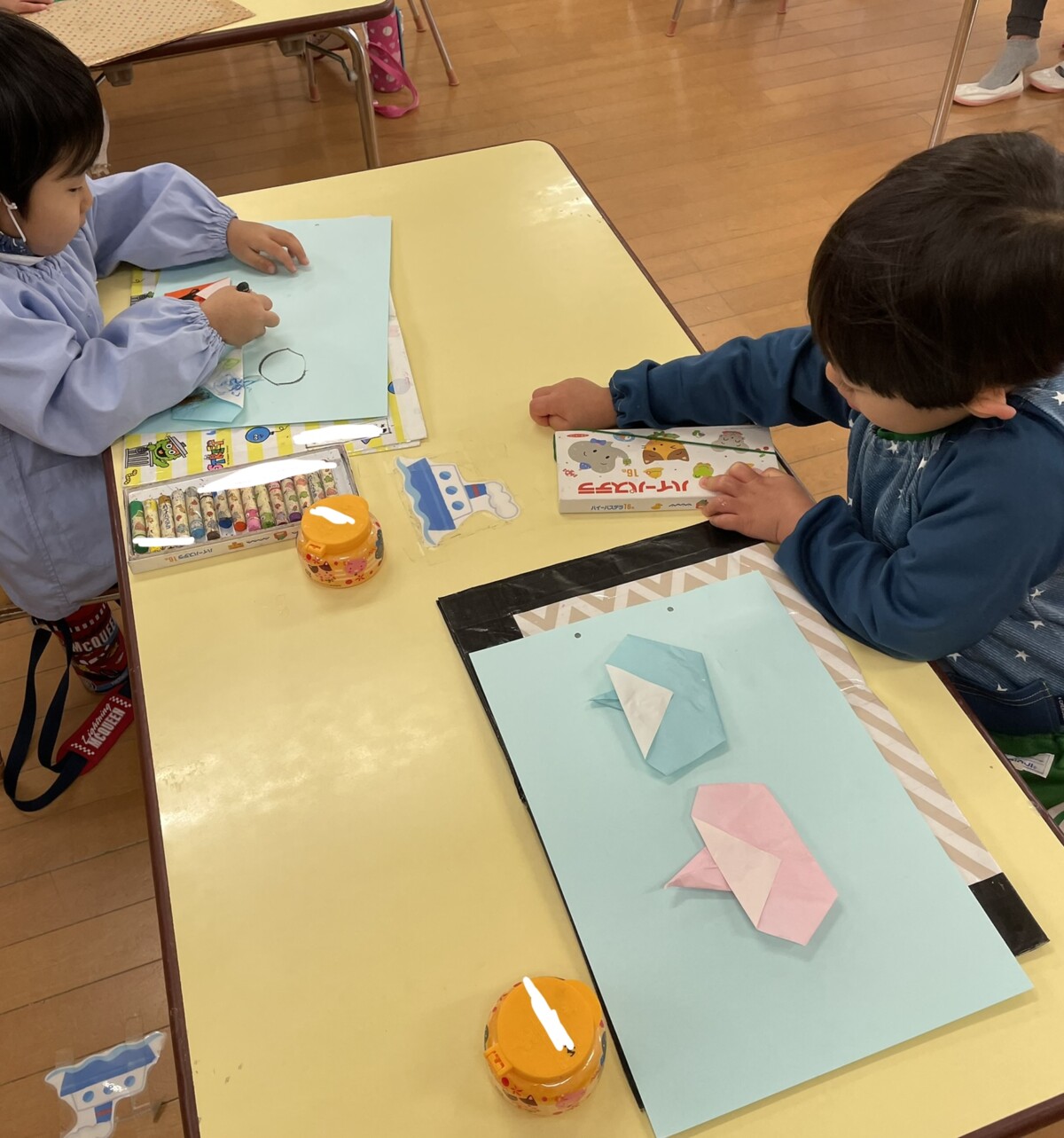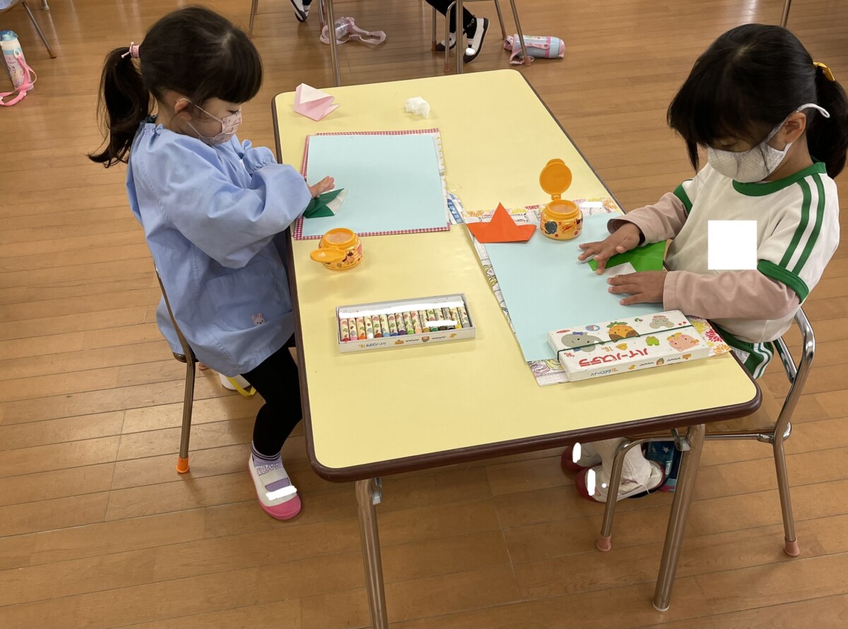 ゆめぐみさんで練習した、三角折りやアイスクリーム折りが、自分の力で出来るようになってきており、さらに少し難しい折り方にまで挑戦できるようになりました。