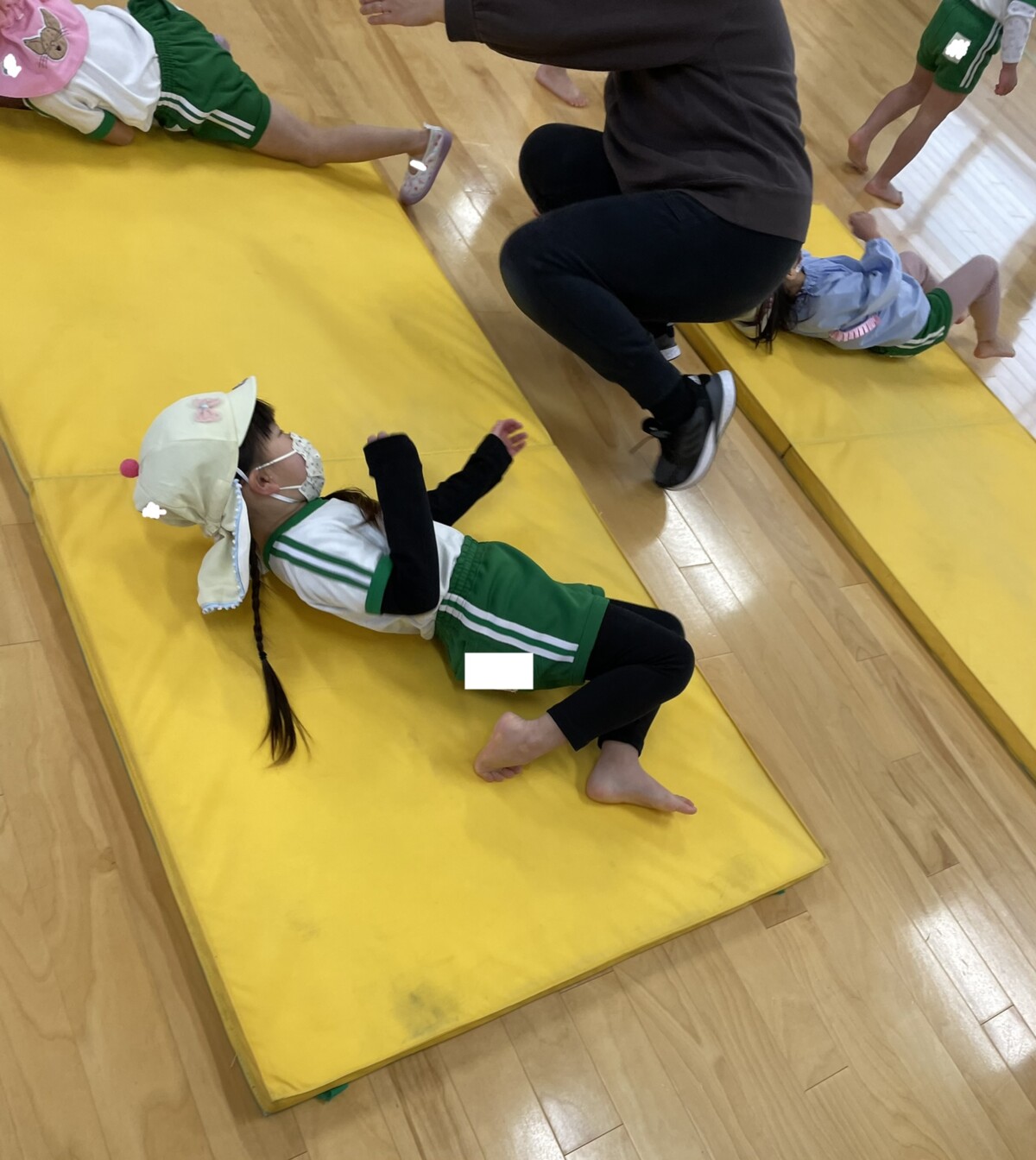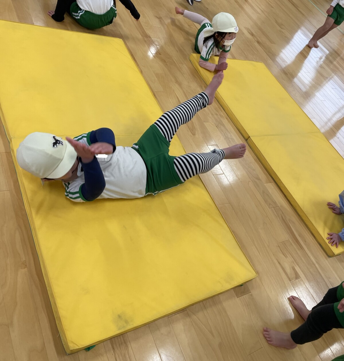 フープをジャンプしたり、マットの上を転がったり、よくお話を聞いてとても上手に出来ていましたよ!