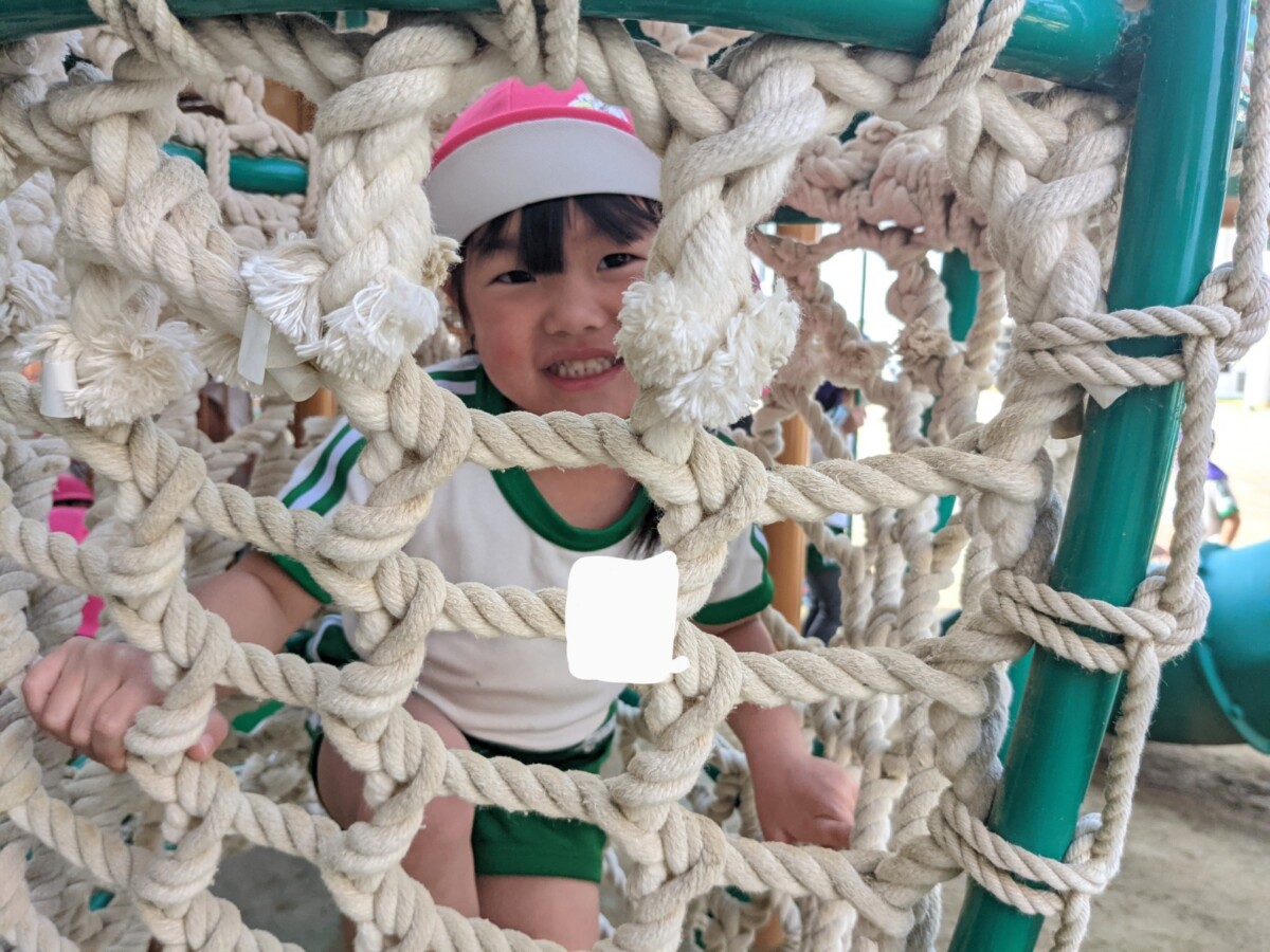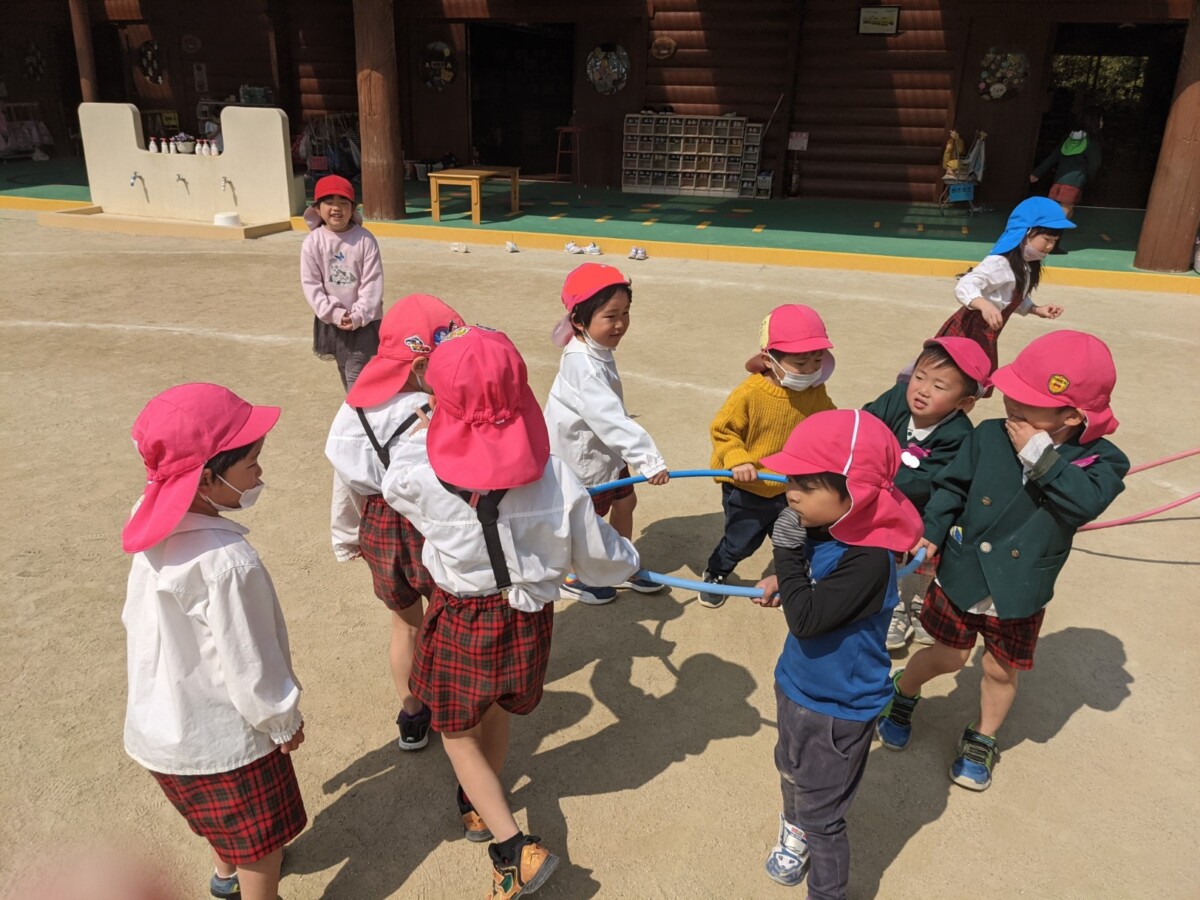 昼食後、お外遊びに行き、男の子たちがフープを持って遊んでいました。
