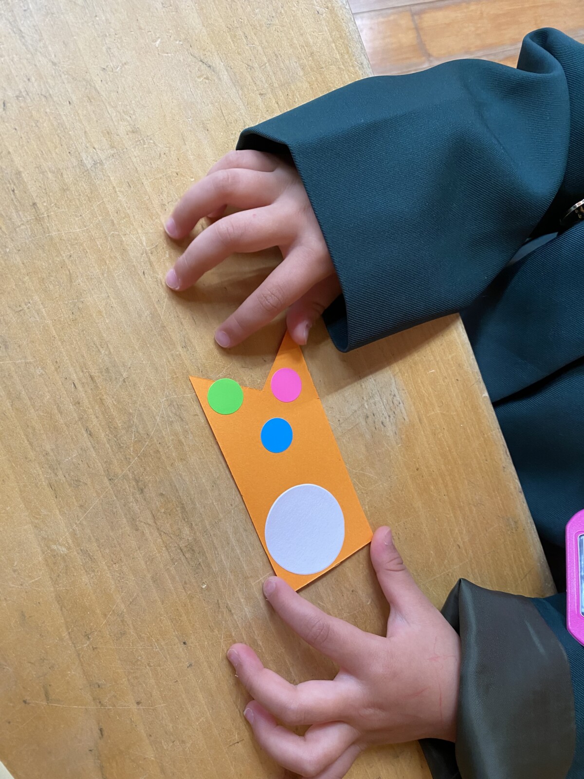 まずは好きな色の画用紙に、シール貼りを行いました!