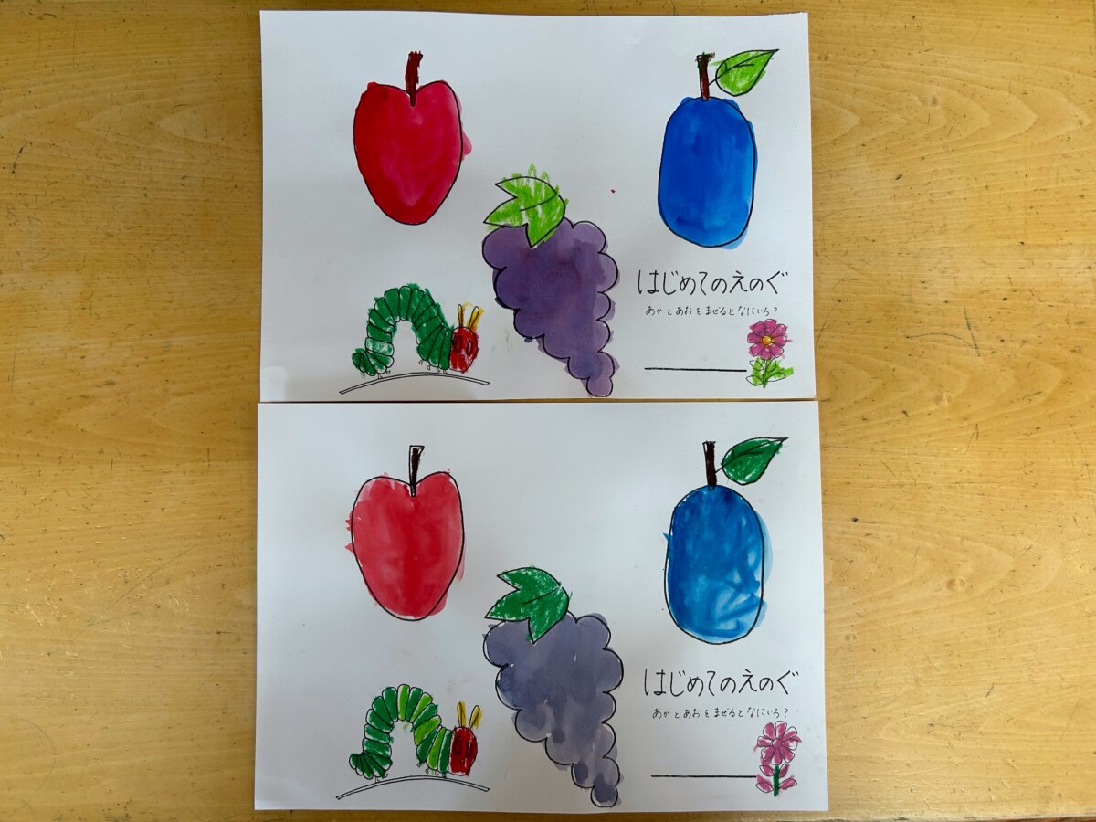子どもたちは上手に色を混ぜ合わせ 🟥+🟦=🟪を作ることができました🎵