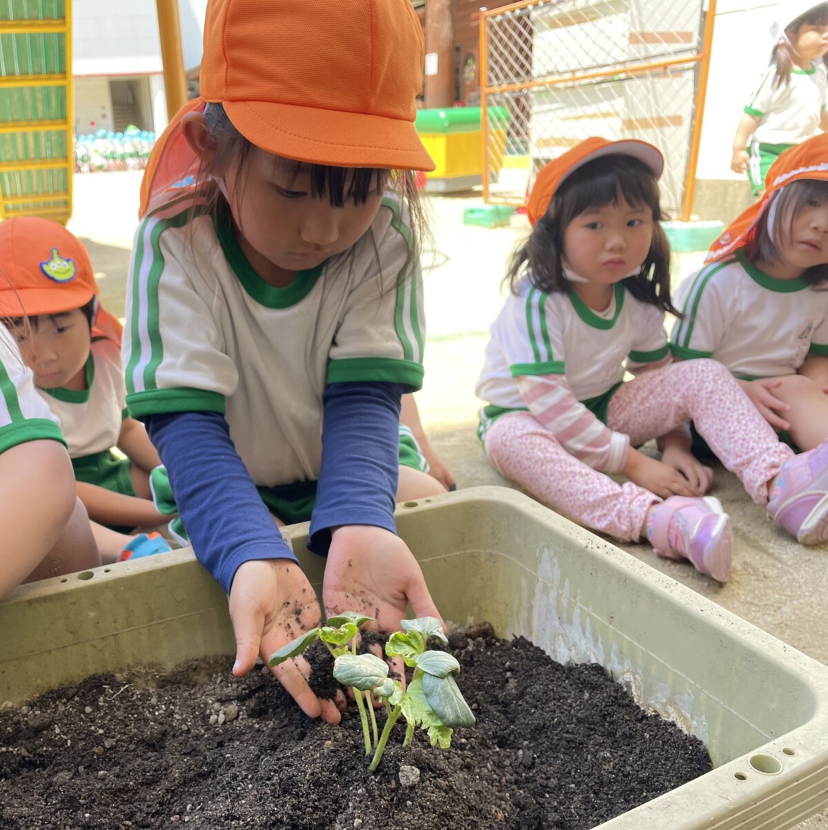 ゆめぐみさんに引き続きつるぐみさんも苗植えを行いました‪🌱‬‪