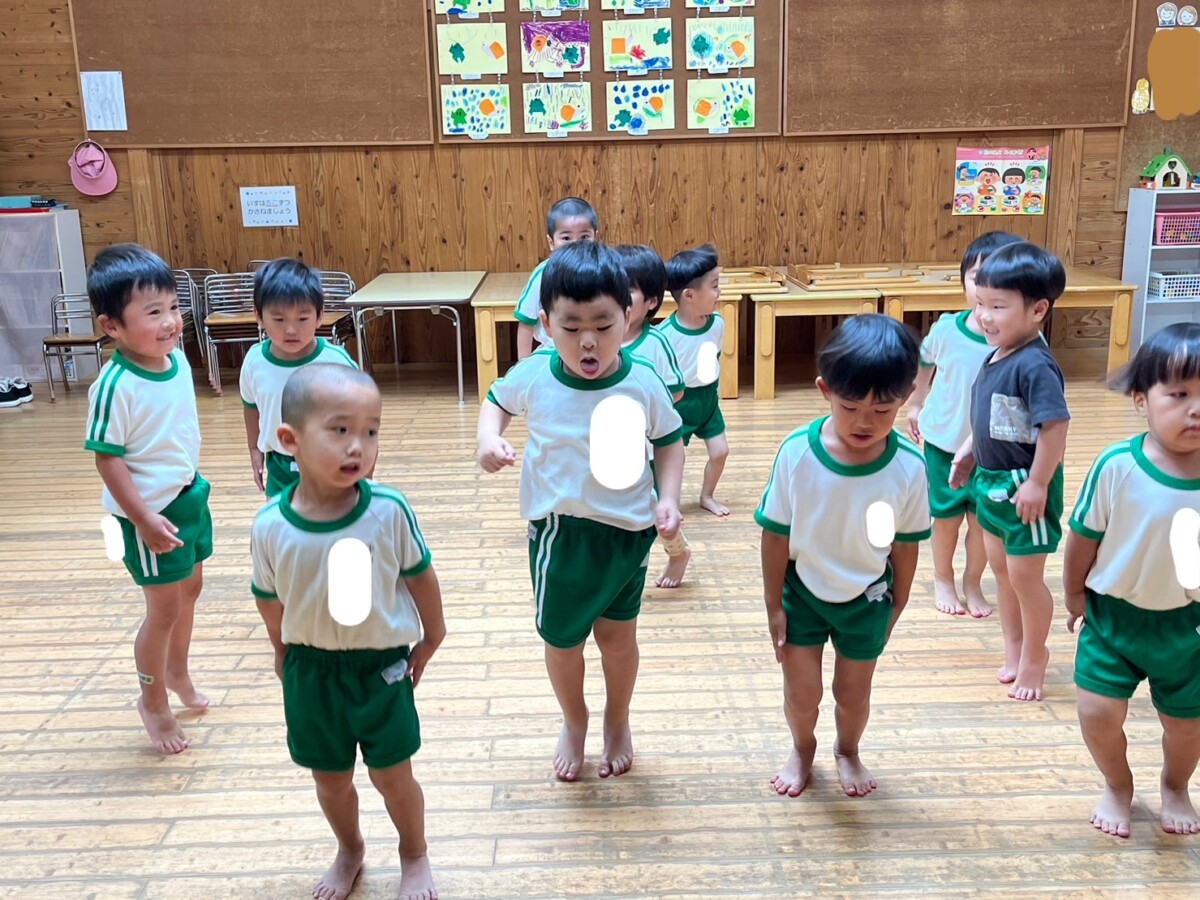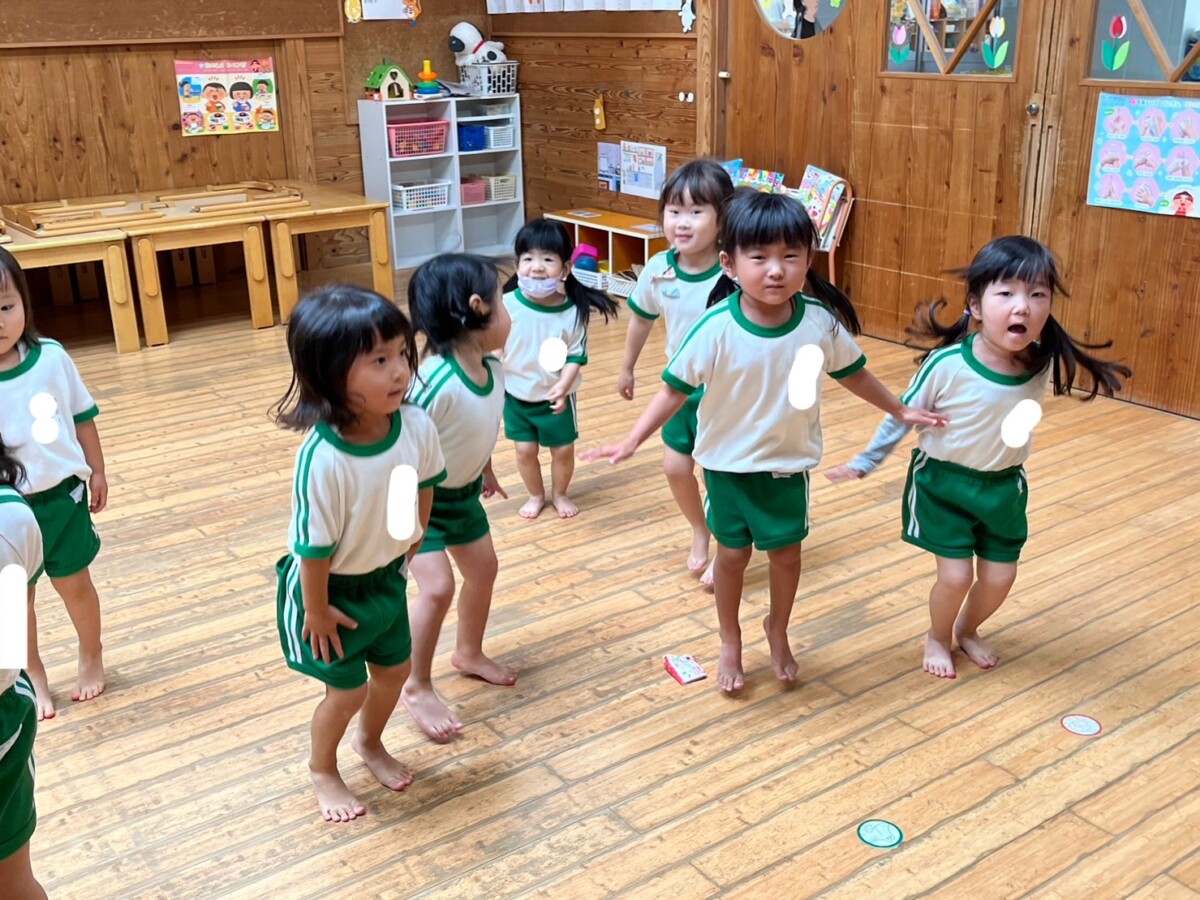 午前中は雨だったのでお部屋でさくらんぼリズムも行いました!