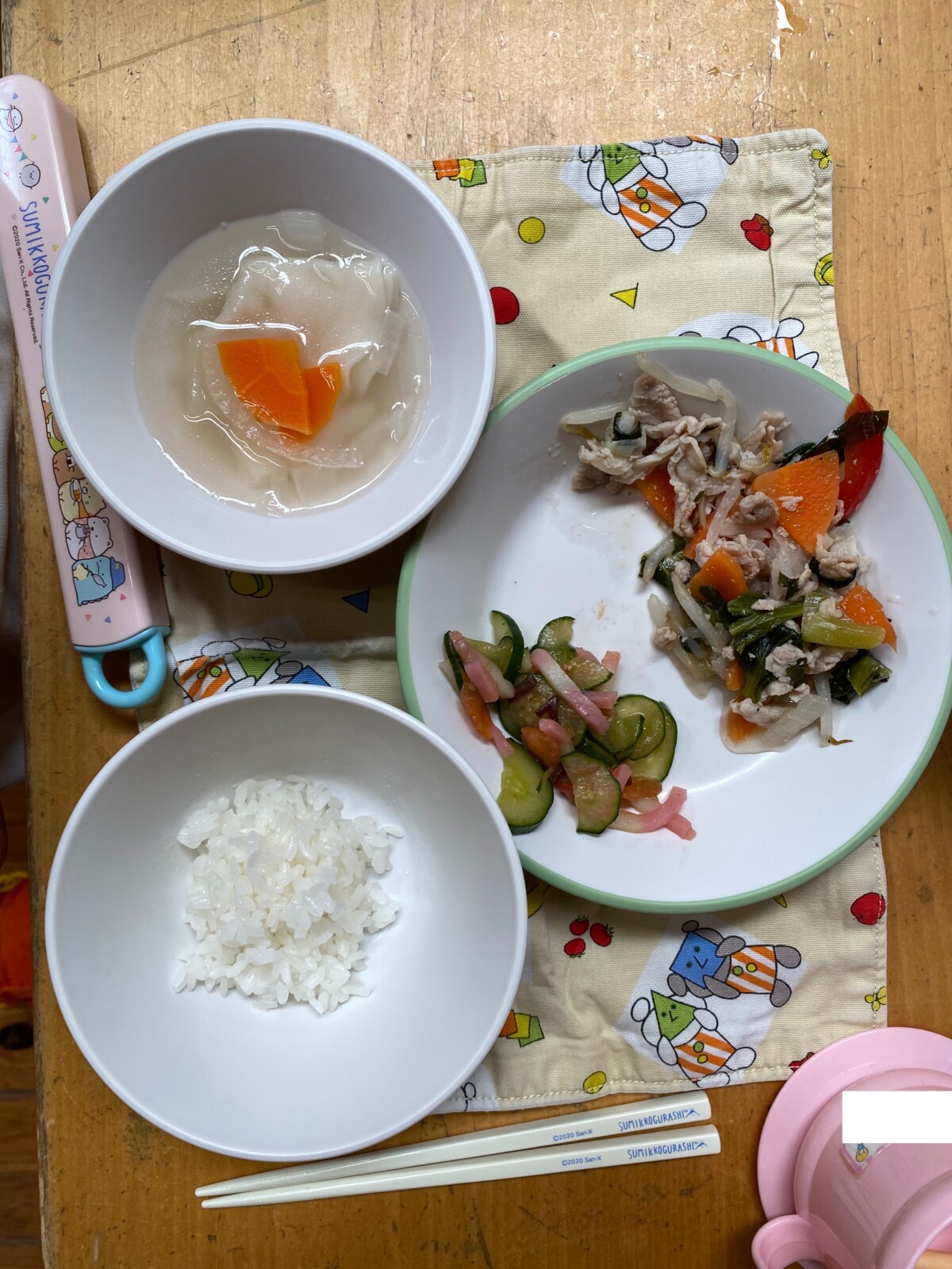 2023.06.01 花鶴丘幼稚園 梅雨入りとなりましたが、 午前中はお天気にも恵まれて、 お外でたくさん遊べた1日になりました。 今日は6月22日にあるお店屋さんごっこに向けて 品物作りをしました✨ はな4くみさんは 『ドーナツ』を作ります。 たくさん売れますように♪と お願いしながら 作っていきました。 いちご味やチョコ味など いろいろな味を作っていきました! 明日繋げて完成させたいと思います! 今日の給食です。 明日も元気に来てください😆 今日の担当は はな4くみ釜瀬でした!