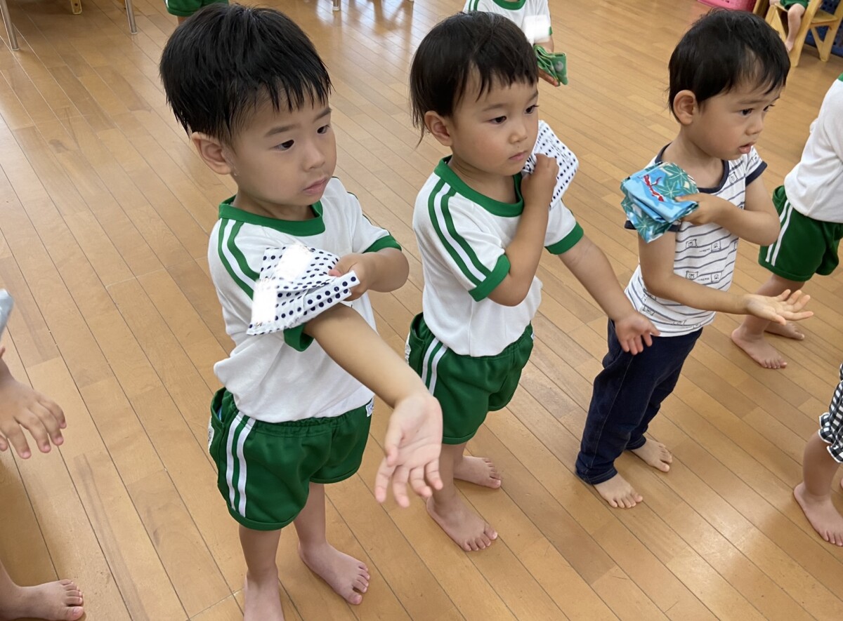 「か〜んぷまさつをいたしましょう🎵」と元気に歌いながら体をゴシゴシ⭐️