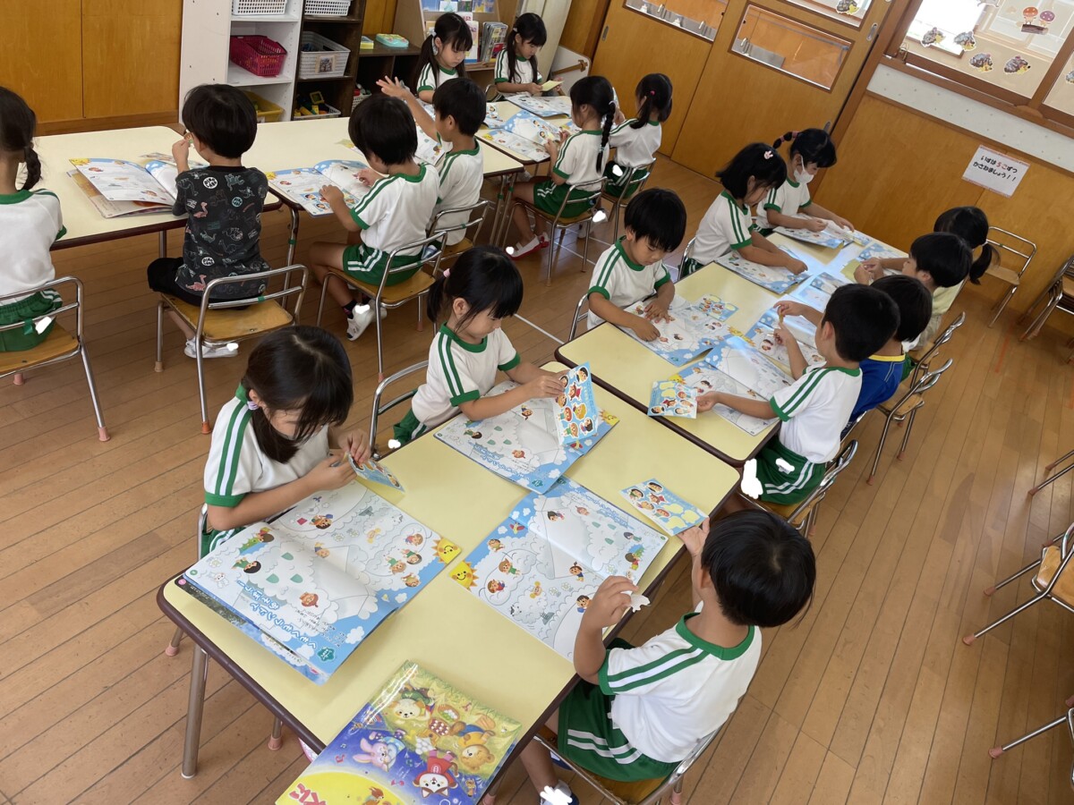 お友達とどこに貼る?と相談したり、ここに貼ってみたよーと教えあったり、楽しい時間となりました♪