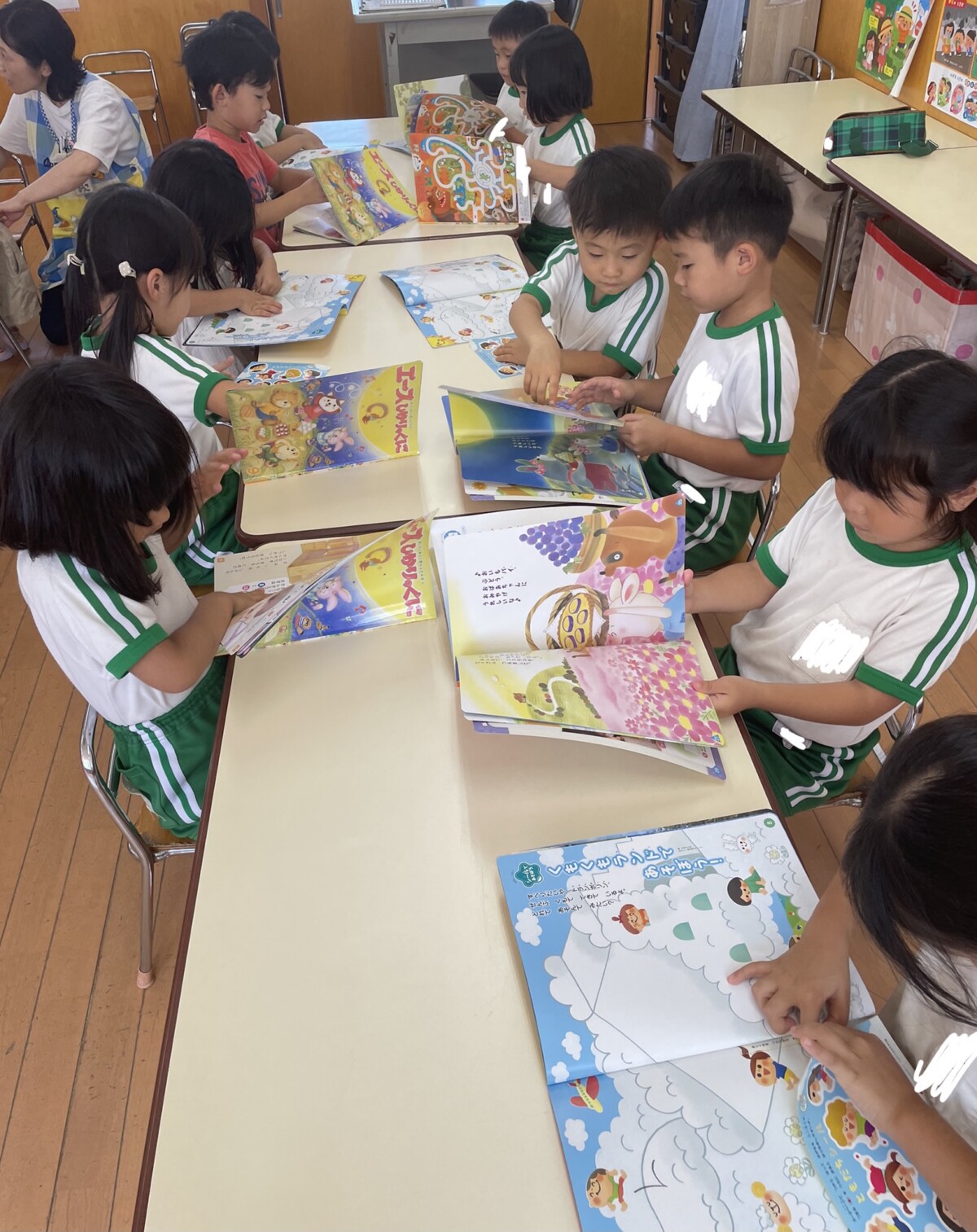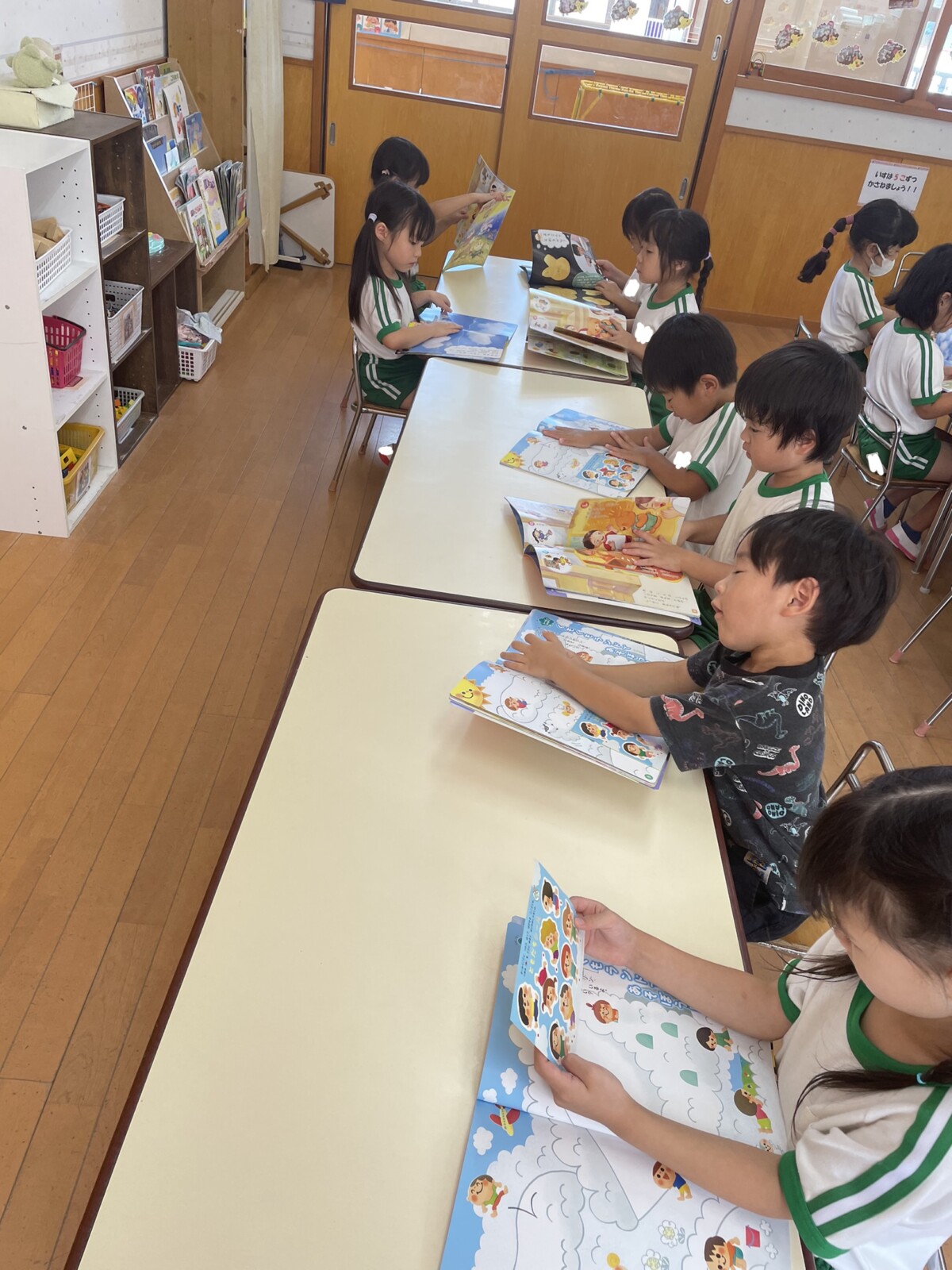 午後は、月刊絵本シール貼りをしました!