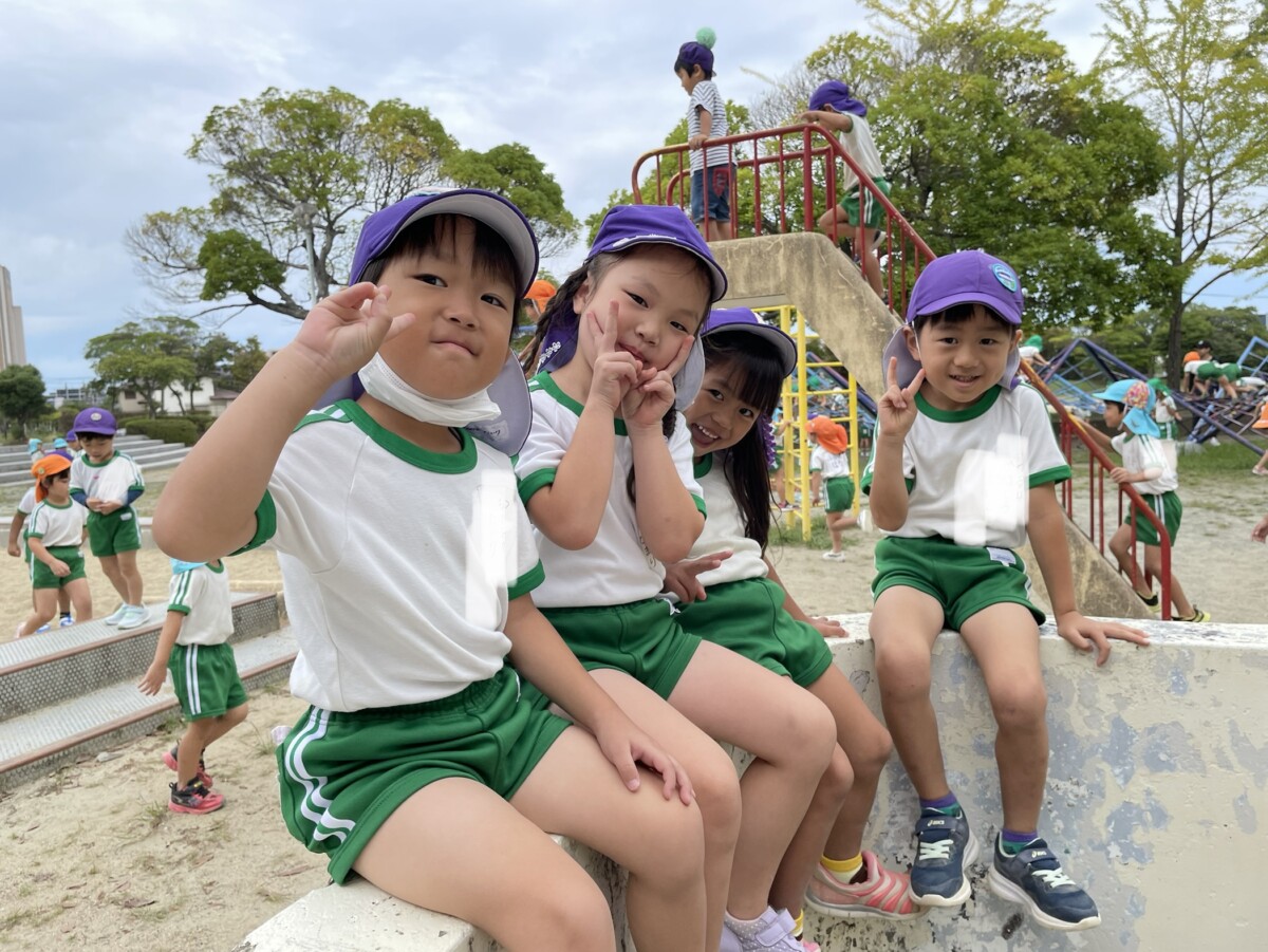つるぐみさんは、運動会の練習の合間に、2号公園で遊んだり、学年全員で職員も踏まえてリレーやしっぽ取りをしたり、