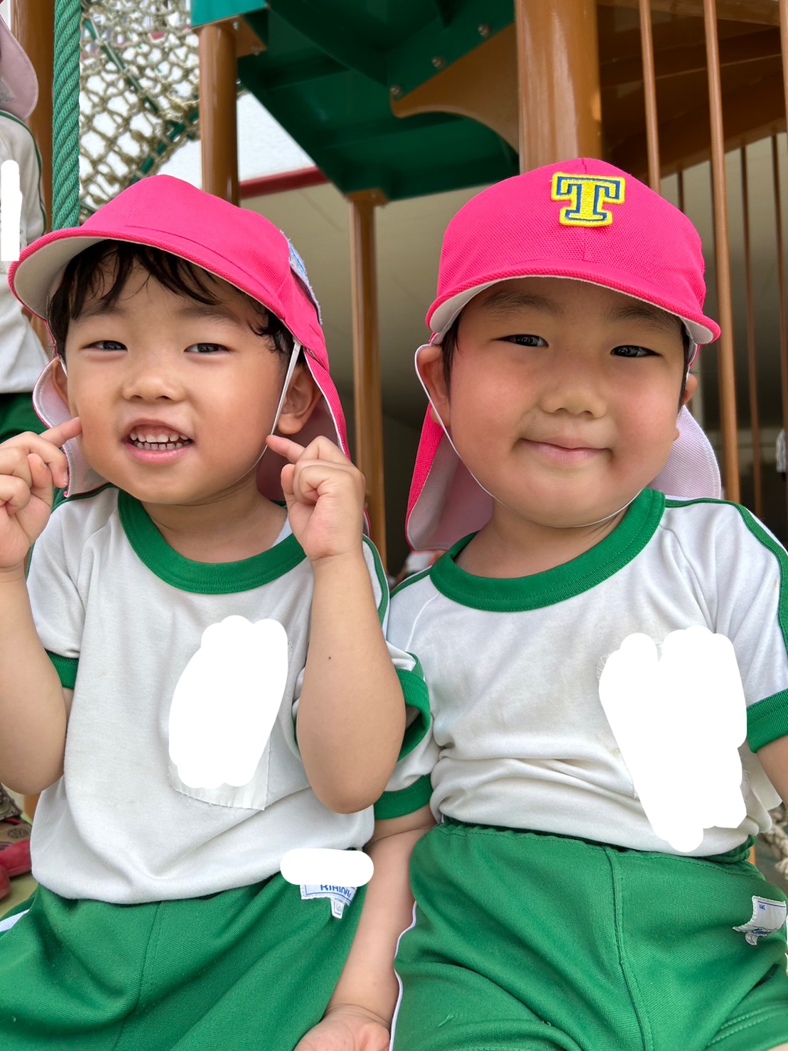 遊具で仲良く肩を寄せ合い遊んだりと