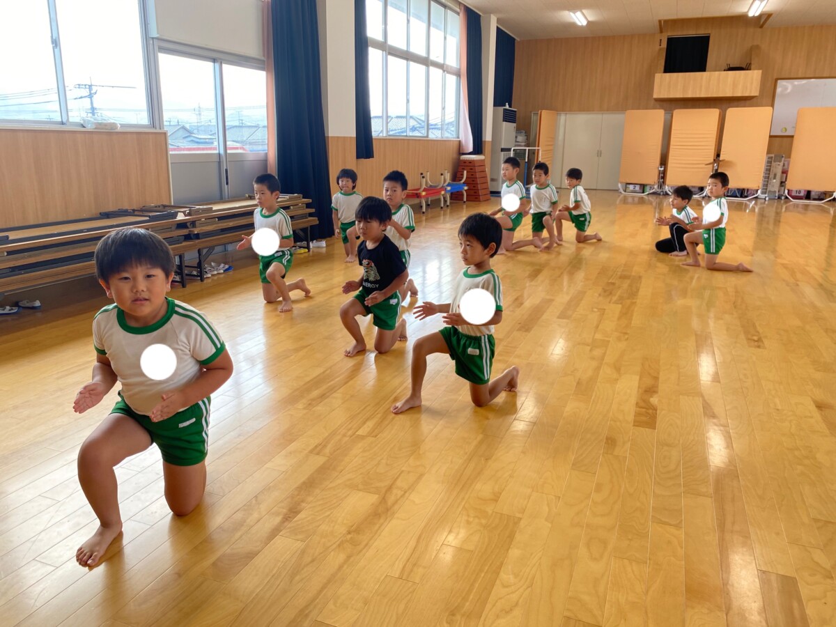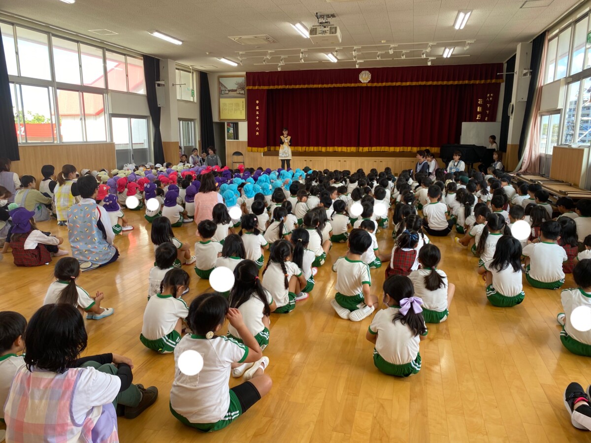 体育館に全学年集まって2学期始園式を