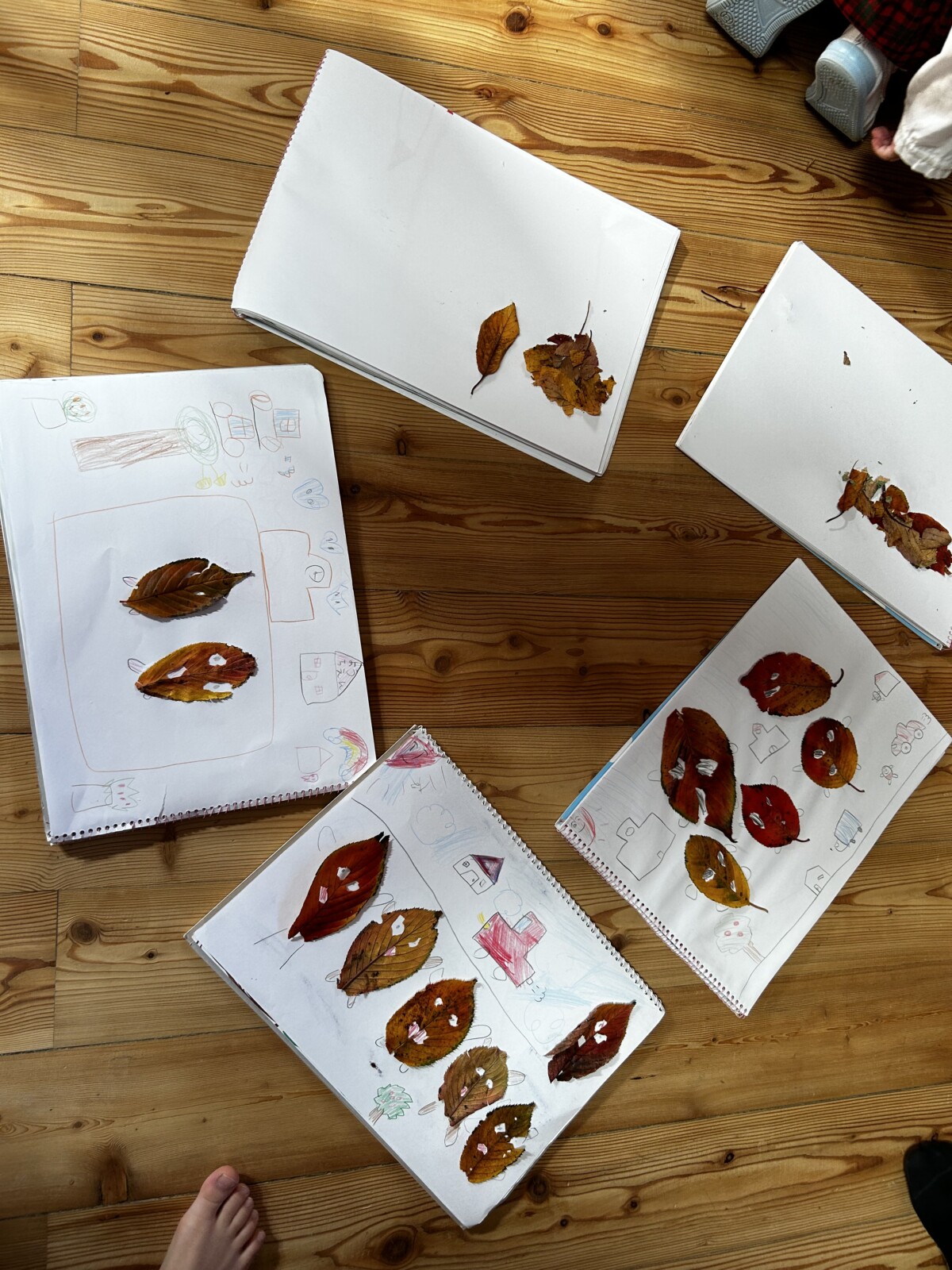 落ち葉を拾って顔を作ったり、ちぎったり💭