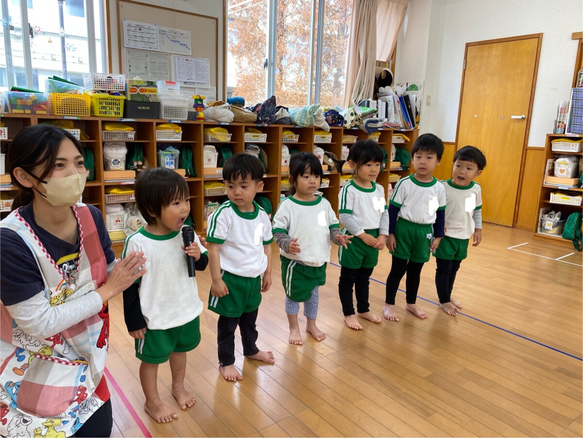 毎日の朝の会で、季節の歌を歌ったり、朝の歌を歌ったり、楽しく活動しているたいようぐみさん♫