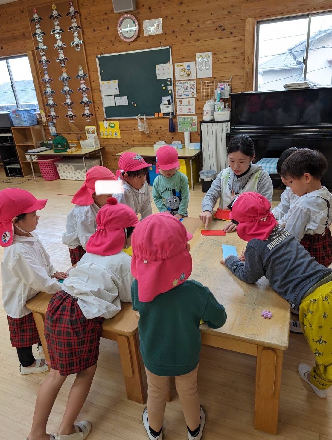 最近のゆめ2くみさんでは、夢中になって折り紙を折る子どもたちがたくさんいます!折り紙を見せると一気に集まってきます😆