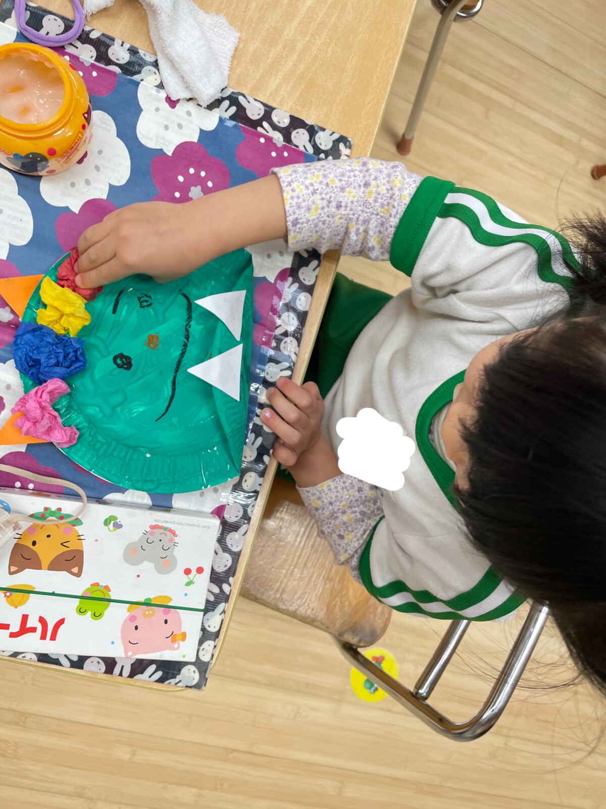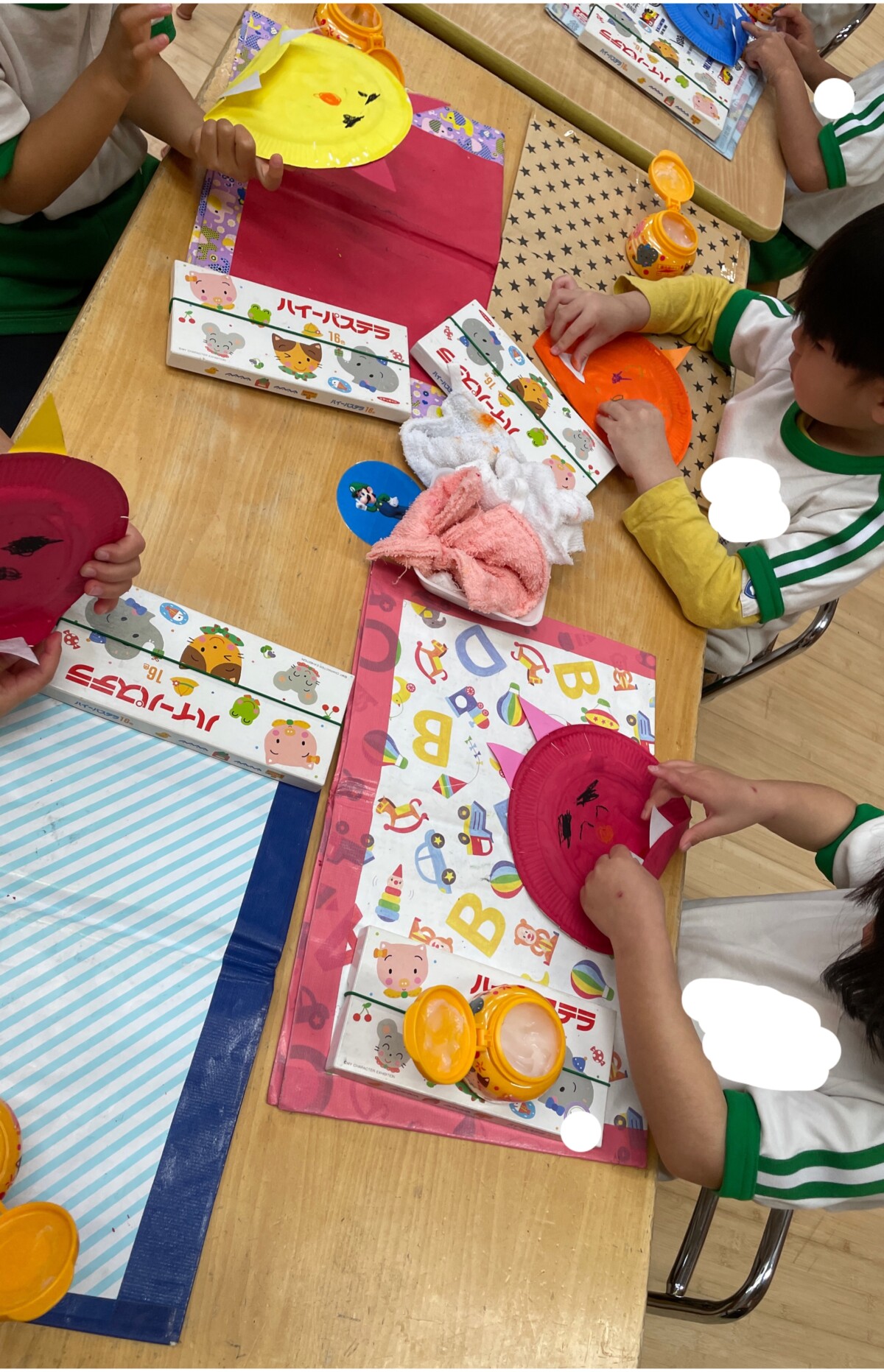さて今日、ゆめ1くみさんは鬼のお面の製作を行いました。