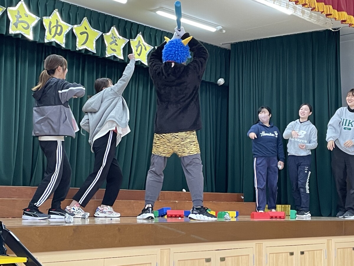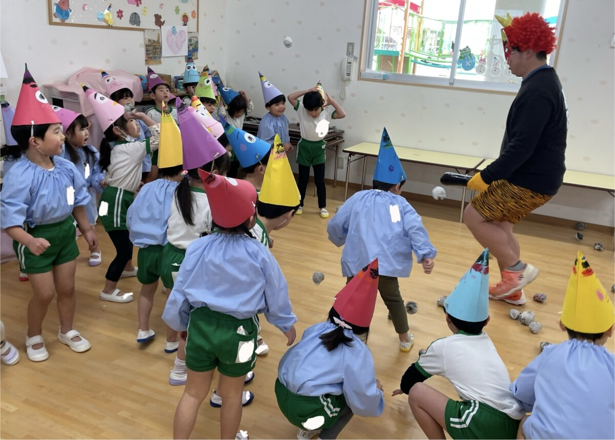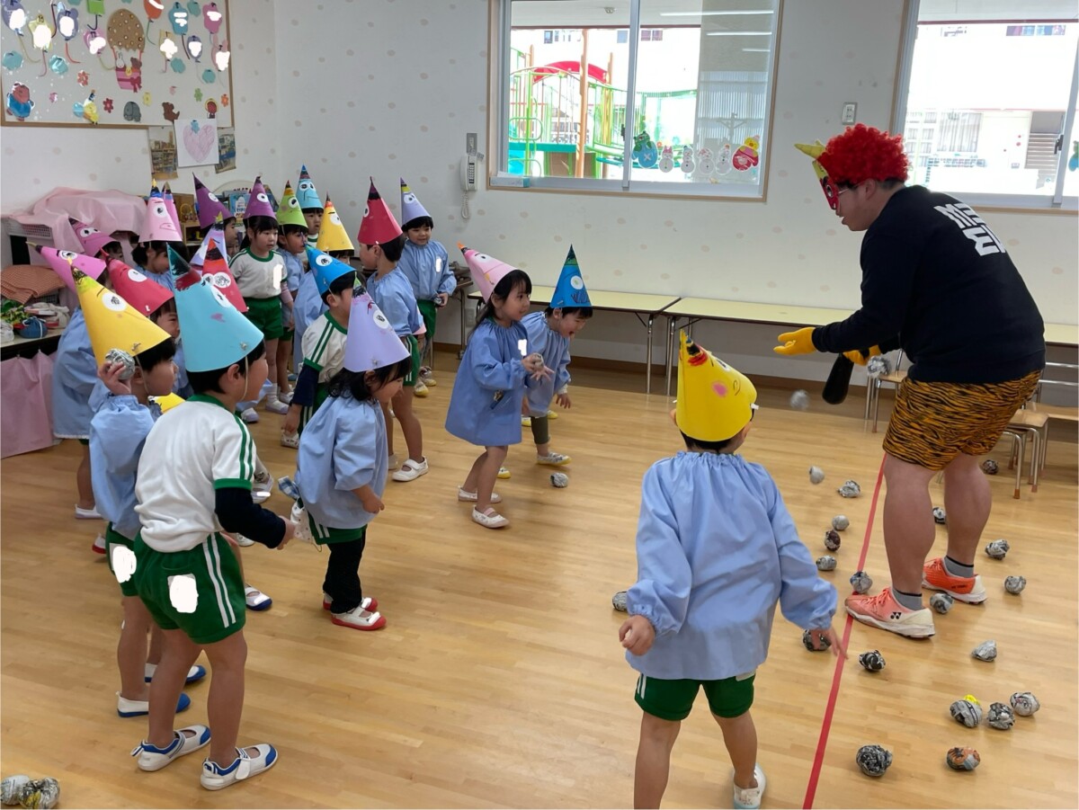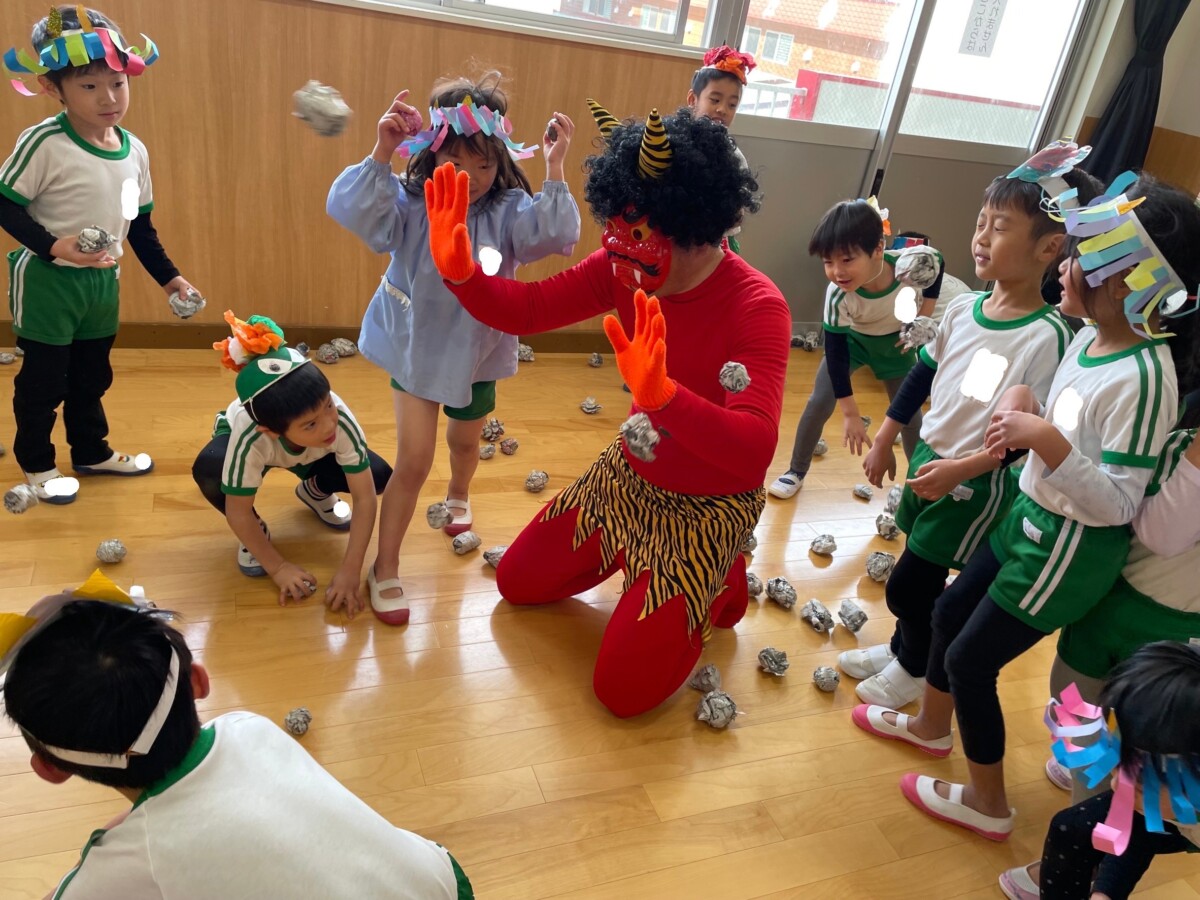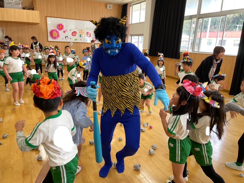 節分への理解を深め、はなぐみ、つるぐみは体育館にて鬼退治👹
