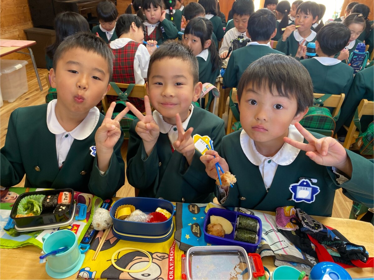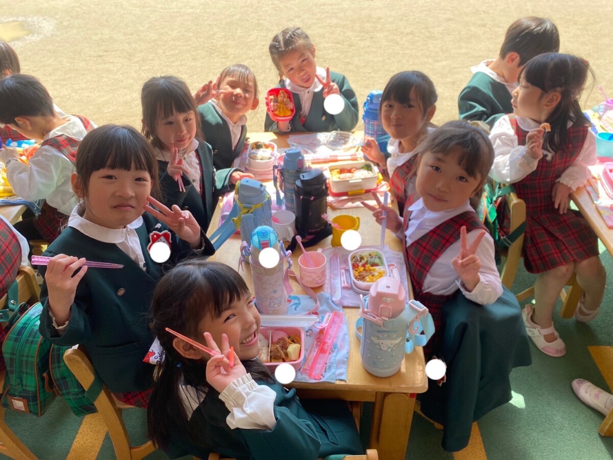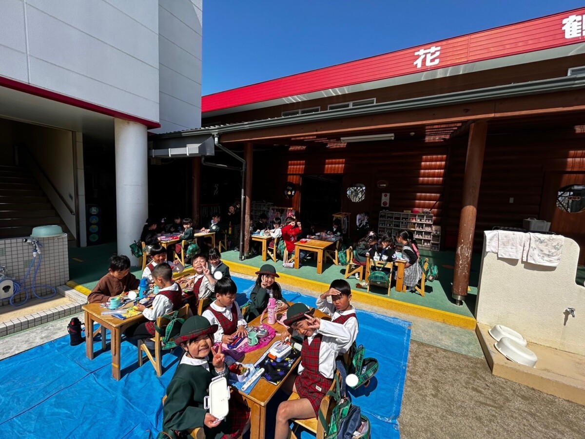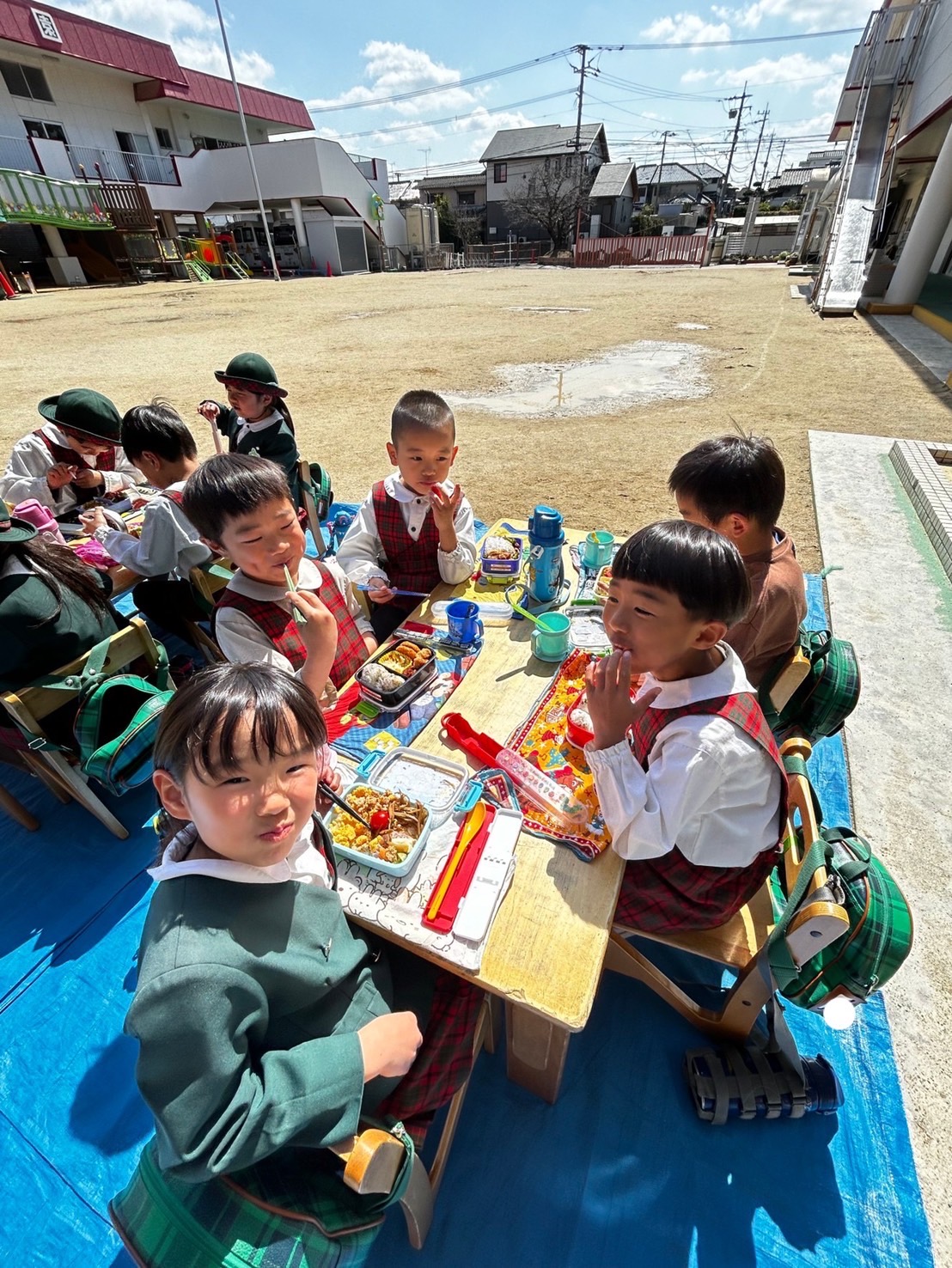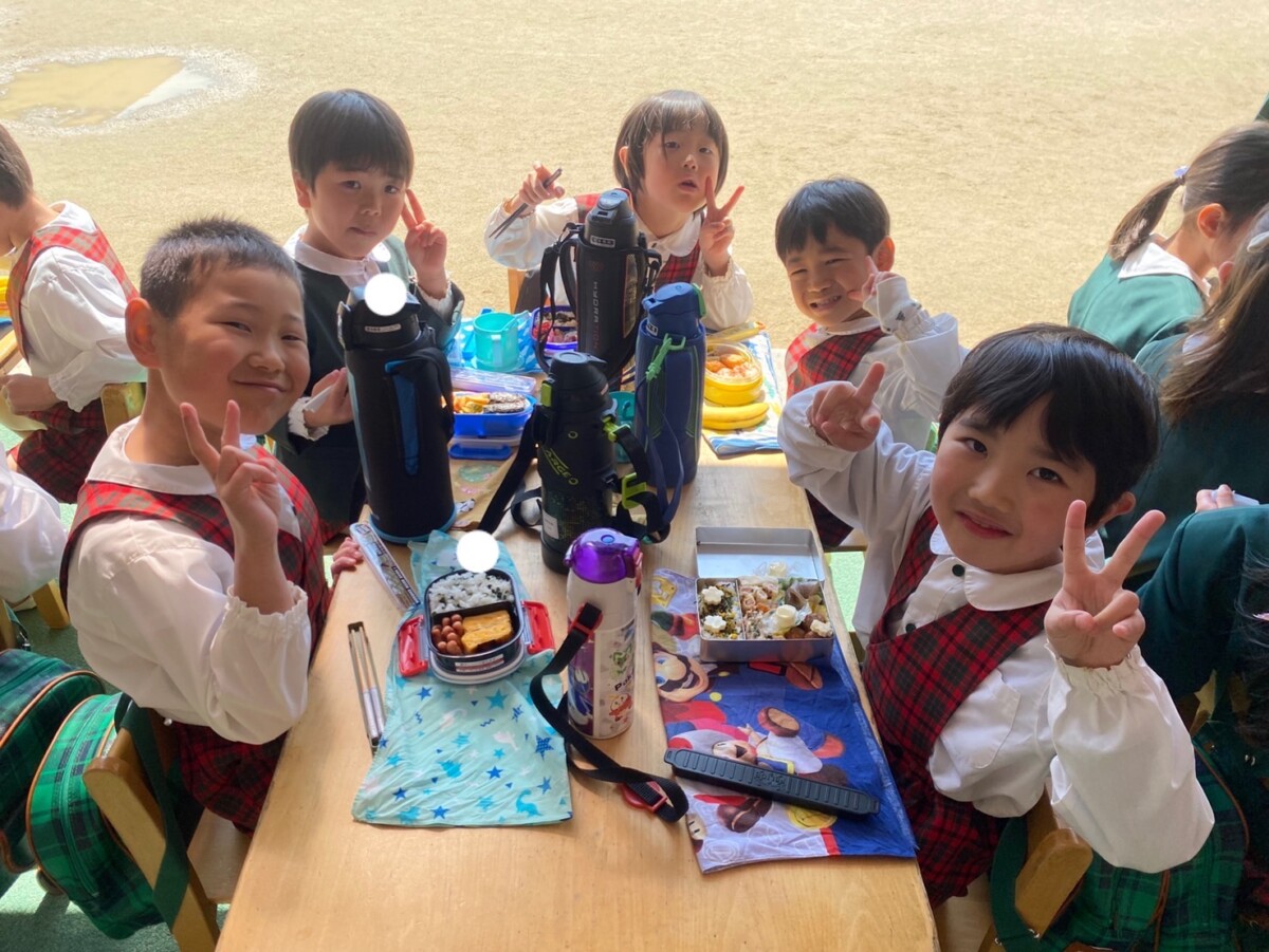 今日は天気が良く、はな1.3くみは外でお弁当を食べ、